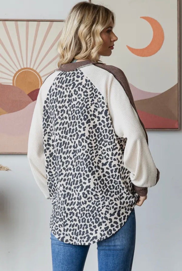 Animal Color Block V Neck Lonh Sleeve Pullover Top